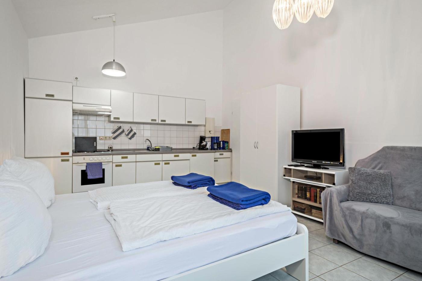 Diese Ferienwohnung hat 1 Schlafzimmer, einen TV mit Satellitenkanälen, eine gut ausgestattete Küche mit einem Ofen und einem Toaster sowie 1 Badezimmer mit einer Badewanne. In dieser Ferienwohnung werden Handtücher und Bettwäsche angeboten.